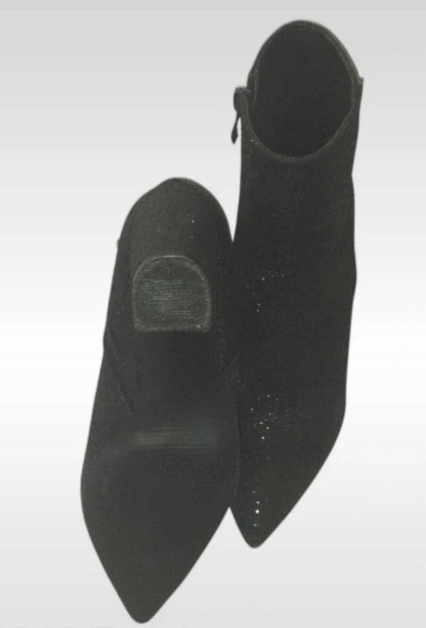 Superbe bottines paillettées noires, au style chic et glamour ! Bout pointu, fermeture zippée sur le côté, talon haut de 11cm pour une silhouette élancée. Pointure 37.
