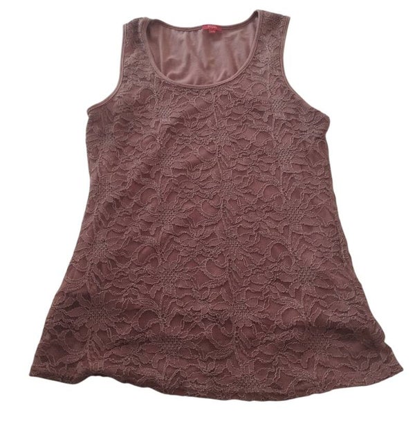 Tee-shirt femme sans manches Tissaia en coton vieux rose, rehaussé d'un motif brodé ton sur ton.Chic et confortable en taille 50/52